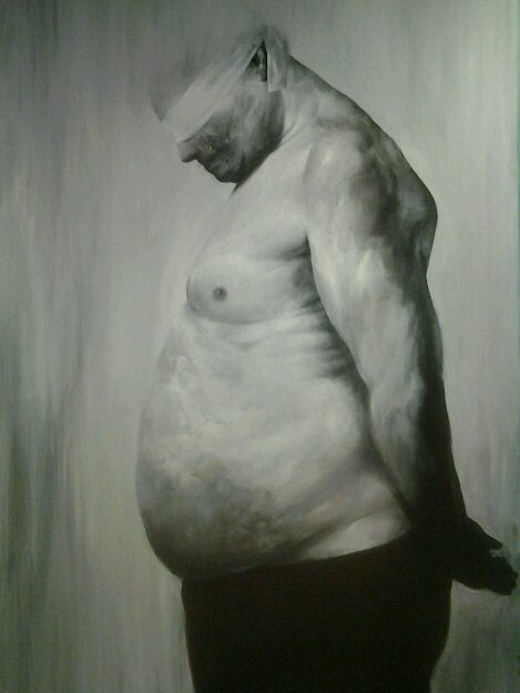 Benjamin Carbonne - acryliques : Le regard - 2019 -146*114cm / L'Obèse - 2016 - 160*130cm /
